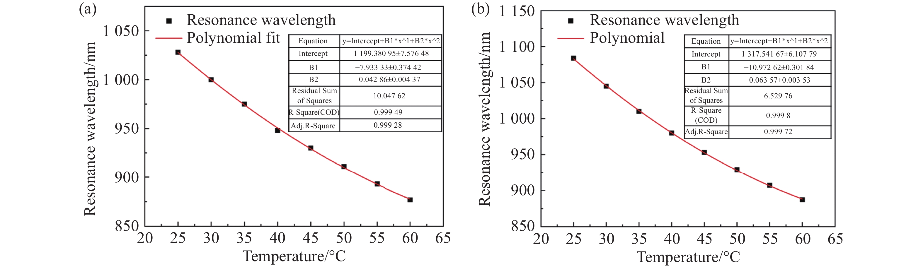 To address the challenges of complex metallic film coating processes and low integration in single-parameter detection for existing photonic crystal fiber surface plasmon resonance (PCF-SPR) sensors, a dual-parameter sensor based on gold nanowire-integrated bias-core PCF-SPR is proposed. Unlike conventional in-hole coatings or metallic film structures, the gold nanowires are directly attached to the fiber cladding via chemical vapor deposition (CVD), eliminating uneven coating issues and significantly simplifying fabrication. By optimizing the asymmetric bias-core fiber structure and leveraging the strong localized field enhancement of gold nanowires, the sensor achieves high-sensitivity synchronous detection of temperature (25−60 °C) and refractive index (1.31−1.40) in dual-polarization modes. The simulation results demonstrate that the x-polarization mode can achieve 1.31−1.40 refractive index detection with maximum wavelength sensitivity and amplitude sensitivity of