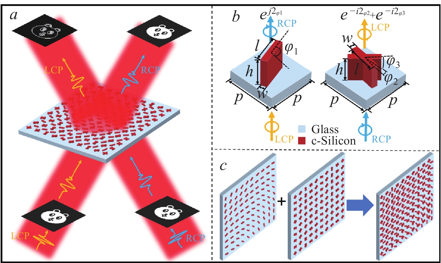 Optical image processing has the advantages of fast and parallel operation. One single-layered metasurface is designed to implement the optical imaging and edge detection of image. The dual-functional image processing is conducted without the aid of 4f system and it is switched only by the handedness of incident circularly polarized light. The designed metasurface consists of silicon nanopillars and the optimized nanopillars are equivalent to half-wave plates with the transmittance of 87%. The simulation and experimental results verify the performance of metasurface. The integrated optical metasurface enables the extremely simple image processing system and it paves the way for the applications of metasurfaces in parallel image processing and optical integrating.