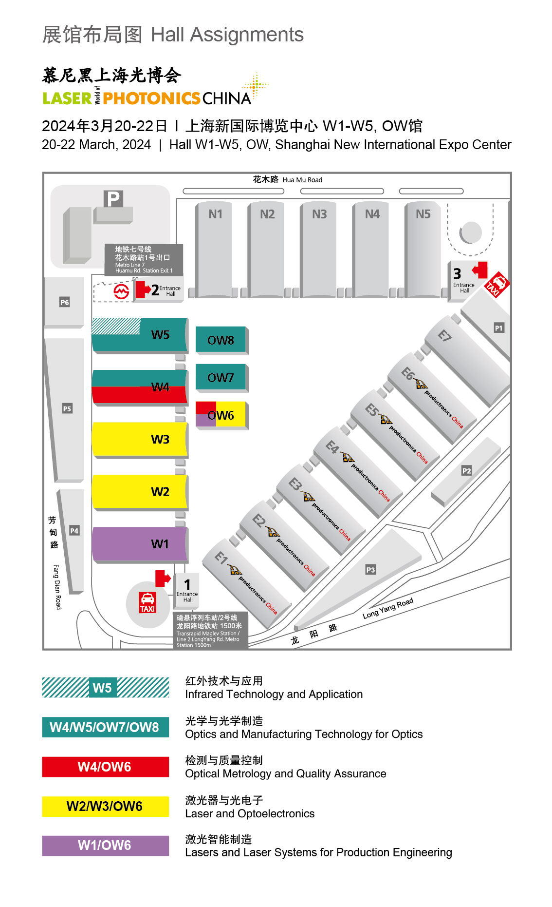 随着光学下游领域地不断发展,如智能手机、智能安防、车载光学、医学生物检测、超高清摄录、AR/VR等细分领域的需求持续向好,同时在微纳光学、强激光与超快光、量子计算光通信等领域也取得重大进展,为此,2024年慕尼黑上海光博会将推陈出新,进一步扩大光学馆展示面积,W4和W5为光学与光学制造展区,红外展区面积扩增高达40%,将重点展示光学元件/材料、光学冷加工设备及光学检测/精密仪器、镜头与摄像、安防与监控、红外传感器等各类光学产品,全方位引领产业向高质量方向发展,助力构建产业新生态。